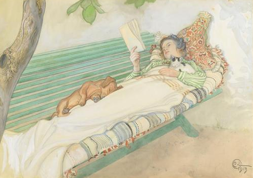 Larsson assure le seul chat de l’exposition avec_ jeune femme allongée sur un banc_.