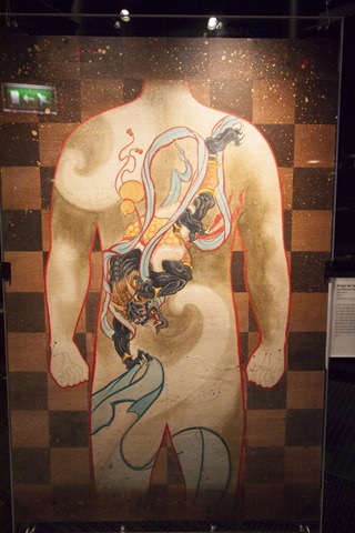 Une exposition dense, variée et multimédia qui montre l’histoire comme l’actualité avec la petite touche gore du musée Branly (morceaux de peaux et membres tatoués prélevés sur la bête) . Un regret de ne pas avoir plus d’explications sur les aspects techniques ; je pense à l’incorporation des pigments dans la peau, les techniques d’effaçage. Dommage aussi que les espaces de circulation soient si réduits, on est obligés de frôler ses contemporains, ce qui n’est pas, vous en conviendrez, très ragoutant.