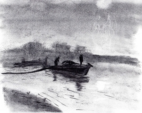 Alexis Voillon (1865-1945) : Vue de rivière au clair de lune