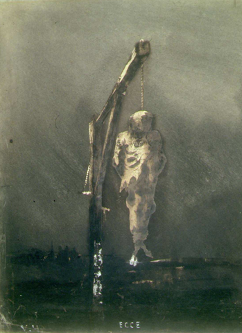 On commence par une première petite salle qui évoque la première parution, en 1869, de cette œuvre, accompagnée par des dessins – splendides – de l’auteur. Comme souvent chez Hugo, c’est très sombre, cela suggère plus que cela ne montre mais c’est impressionnant de maitrise.
