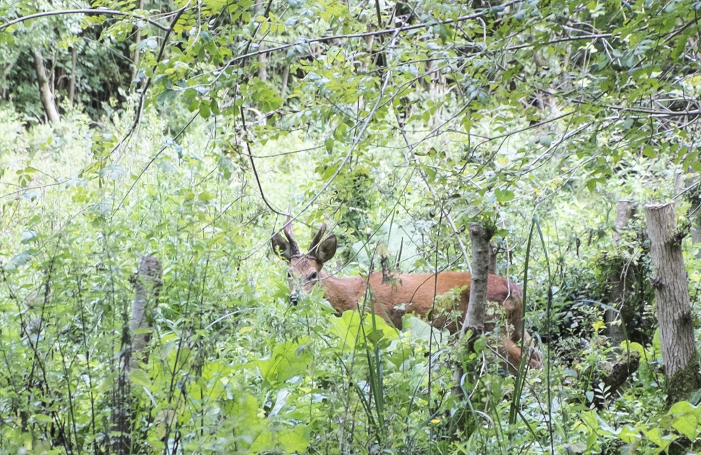 Malgré le passage des vélos et de quelques voitures (qui devaient avoir le même GPS), nous croisons un chevreuil pas craintif à moins de 10 m de la route.
