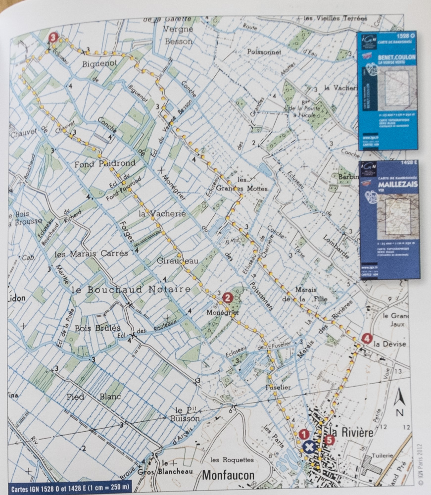n016, “le sentier du marais sauvage” vers Saint-Hilaire-La-Palud dans _Balades nature dans le Marais poitevin_ (ISBN :978-2-84640-357-3)