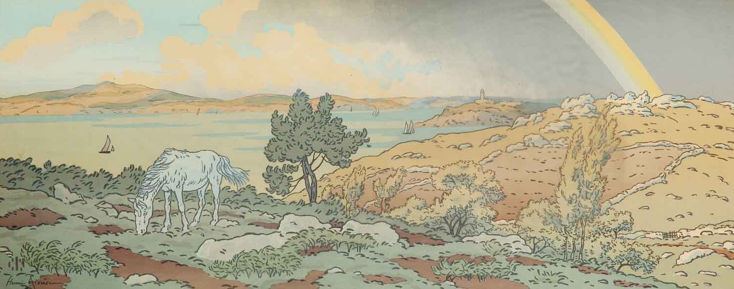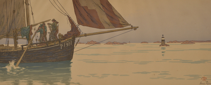 Rivière bien qu'affligé d'une tare difficile à porter (il est parisien) se caractérise par son excellence dans le paysage. Et son amour de la Bretagne. Influencé par des estampes qu'il a reçus ed'un riche amateur japonais en guise de paiement d'une commande décorative pour sa demeure, il se constitue petit à petite une collection d'images (bien plus classes que des Panini même s'il n'y a pas de brillantes) et transpose leur esthétique dans ses propres réalisations.