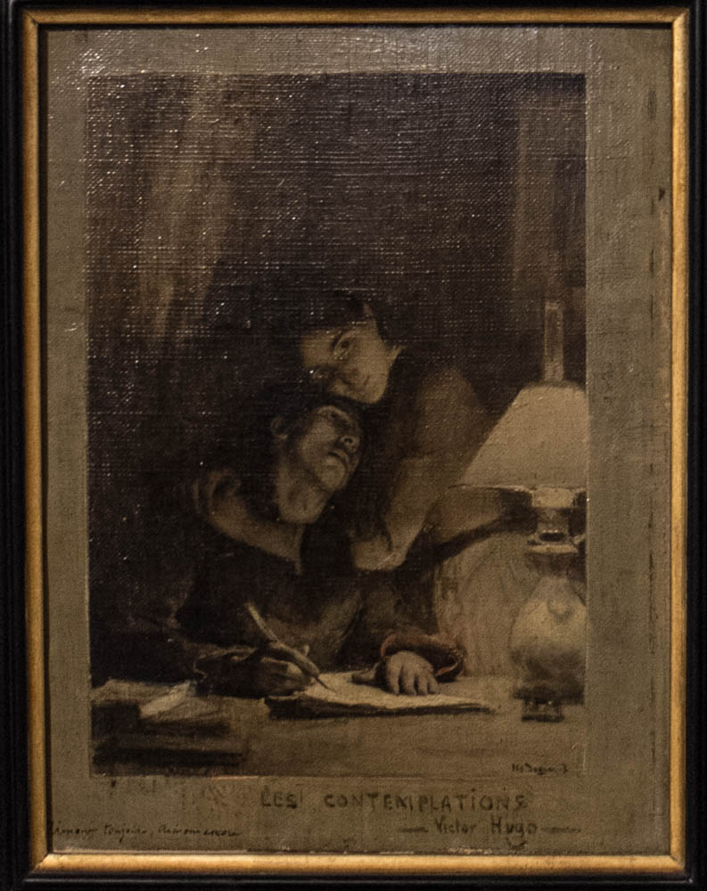 Pour fêter une nouvelle acquisition d'un original d'une illustration des Contemplations, le musée a sorti de ses caves, sa collection de grisailles (peintures en nuances gris) destinées à être imprimées dans les éditions des oeuvres de Victor Hugo. Si ce genre a d'abord été considéré comme mineur, de grands noms ont vite été mis à contribution pour illustrer des éditions plus ou moins luxueuses. Ces artistes anticipaient dès la réalisation du dessin, les contraintes d'une technique d'impression qui allait en se démocratisant.