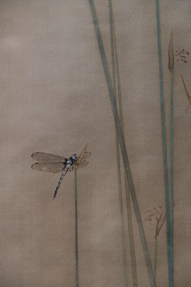 Si le thème - "la nature, les petites fleurs, les petits zozios" - le médium -peinture sur soie ou papier - sont fixés, style et formats vont beaucoup varier au cours des XVIII et XIX siècles que nous sommes invités à parcourir ici. Pas de rupture stylistique - le changement de style cataclysmique est plus à chercher dans la peinture occidentale - mais une transition douce, avide de respecter les prédécesseurs, tout en insérant, par petites touches - parfois peu accessibles aux profanes- des innovations, des particularismes qui vont donner naissance à une nouvelle école, à un nouveau maître.