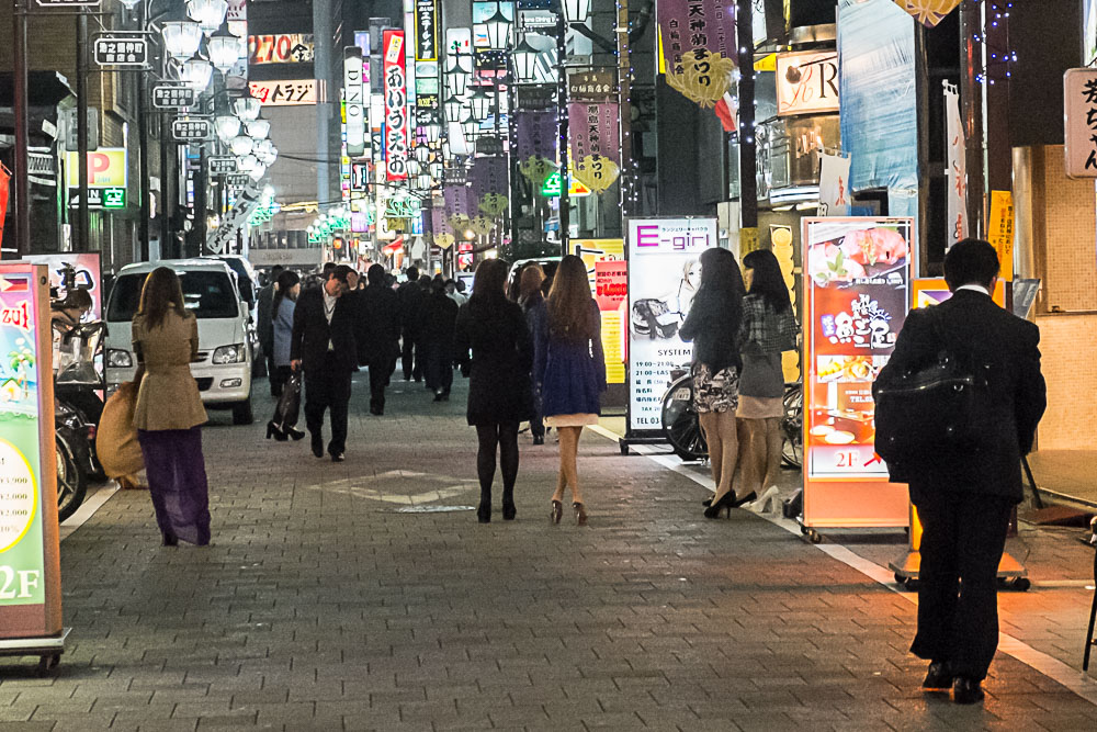 Je n'associais pas forcément Ueno à un quartier chaud, mais les 3-4 pâtés de maisons qui jouxtent notre domicile temporaire semblent attirer les jeunes dames courtes vêtues (j'avoue ce n'est pas forcément un critère, la mode locale étant toujours aussi gentiment suggestive) qui attendent le client... quoiqu'il y a aussi peut être des rabatteuses pour les girl's bars. Elles sont souvent accompagnées de grosses voitures noires qui pourraient appartenir à leur mac ? On déambule pourtant sans une seule once d'inquiétude parmi la faune locale malgré nos quelques 1000 euros en poche, c'est bien le Japon !