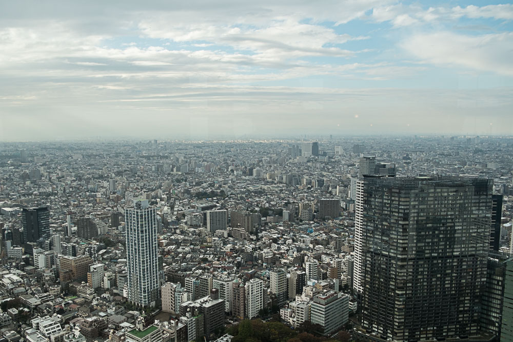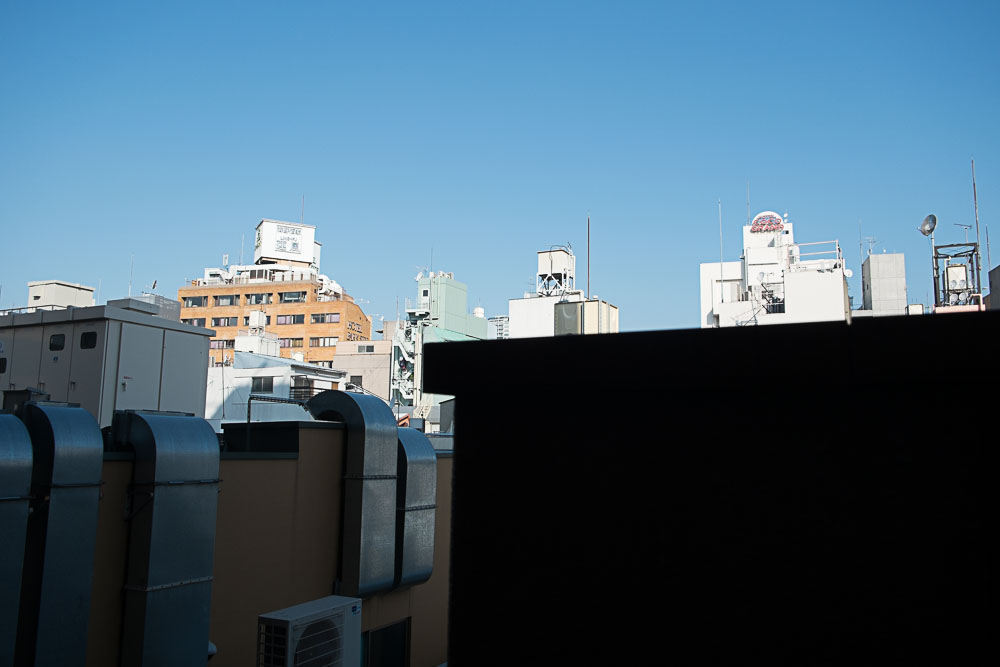 Je disais hier que notre chambre tokyoïte était toute petite, mais la vue vaut le coup d’œil, enfin une fois qu'on fait abstraction du mur qui en bouche un gros tiers :