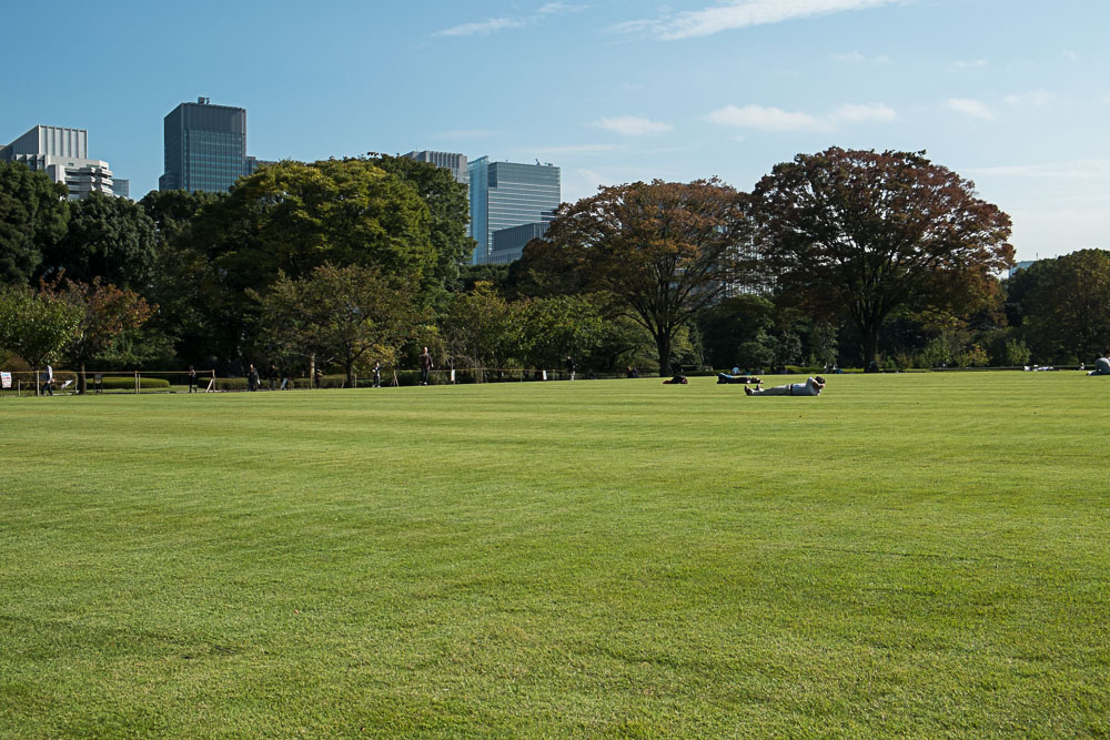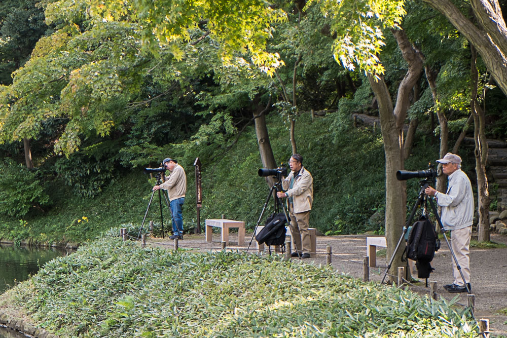 Nous pique-niquons au parc mitoyen d'Hibiya avec encore des photographes au 600 mm qui guettent les canards. En mĂŞme temps, les canards, ils sont juste lĂ Ă attendre qu'on leur donne Ă manger, donc le guet est assez facile.