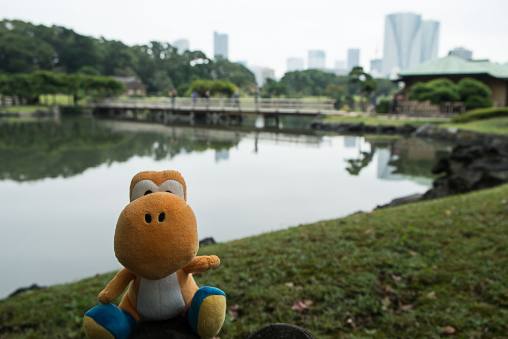 Nous rejoignons à pied le jardin Korakuen - tout près du Tokyo Domu, le POPB local -en beaucoup plus grand j'imagine et qui accueille concerts et matchs de baseball- où les guides volontaires veulent absolument nous renseigner (mais ils sont très gentils). C'est la deuxième fois que je visite ce jardin, c'est toujours aussi joli et il y a toujours les psychopathes qui photographient une tortue de Floride (ou des canards) au 600 mm (et peut être même 800).