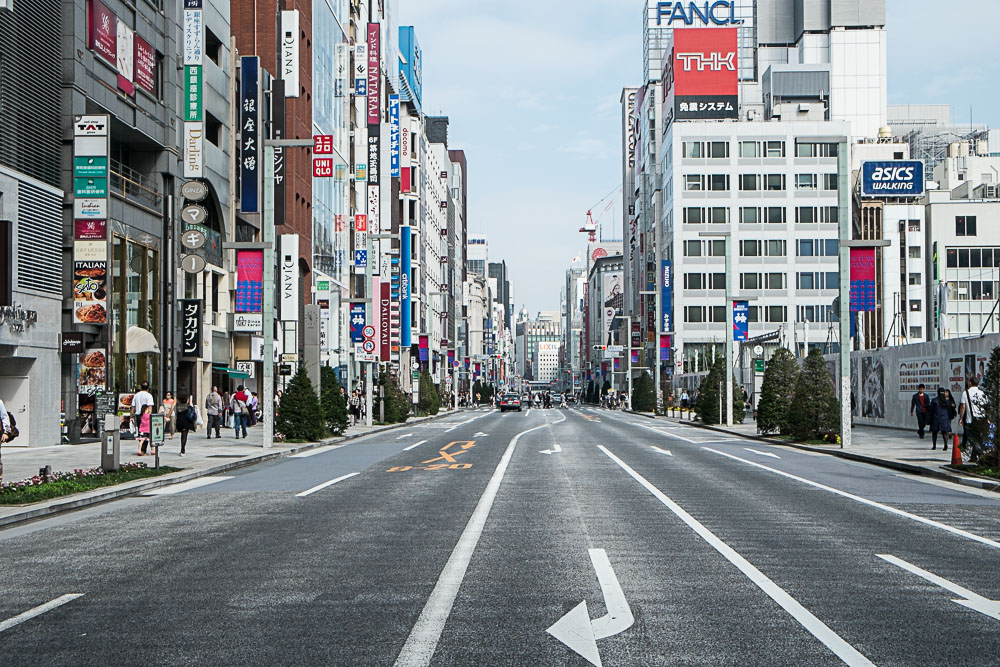 Nous retournons à Ginza, quartier qui se prépare à un truc. Quoi, on ne sait pas exactement, mais la zone devient piétonne le dimanche et il y a de la queue devant des petits barnums.