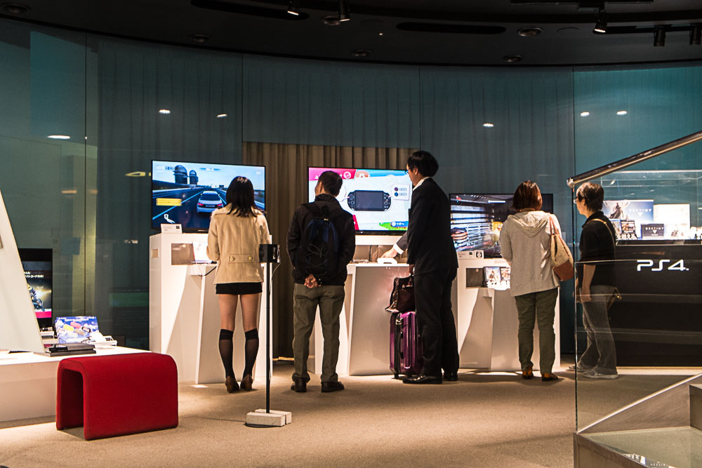 Je voulais absolument visiter le Sony Building. Grosse déception, là où j'attendais des nouveautés qui fassent rêver, des aménagements designs, des protos qui lèvent un pan du rideau sur l'avenir, je n'ai trouvé que des étages encombrés de la camelote actuelle. Alors oui, il y a un écran, unanime vainqueur du concours "c'est moi qui ait la plus grosse 2014" avec cent quarante-douze pouces de diagonale et du 8K, 800 Hz mais bon... Ah si quand même, le viseur de l'alpha 99 est une tuerie, mais c'est un peu faible pour 6 étages.