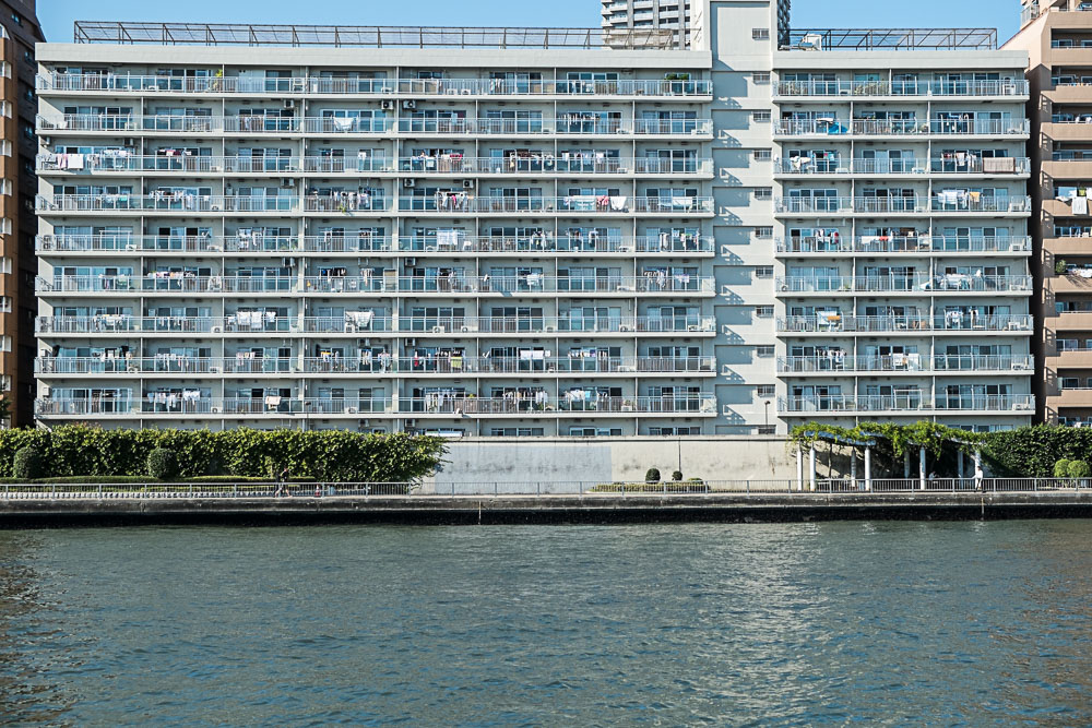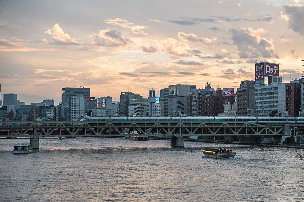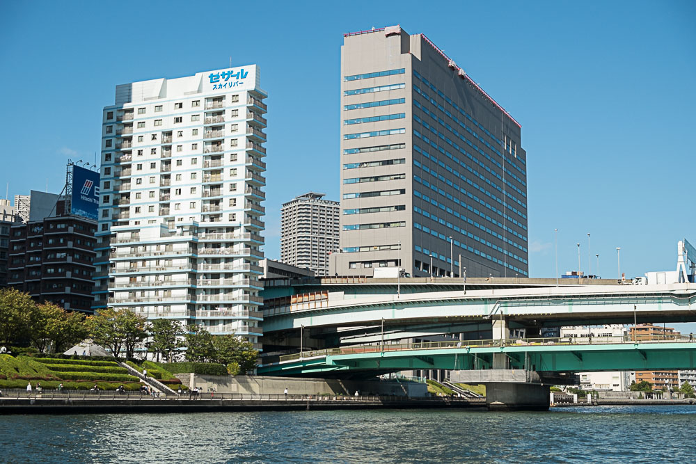 Les rives de la Sumida donnent Ă penser que tout le monde veut profiter des derniers jours de beau temps. Elles montrent aussi pas mal d'autoroutes...