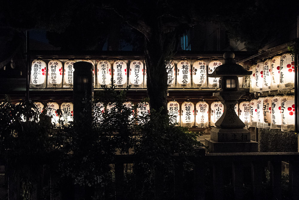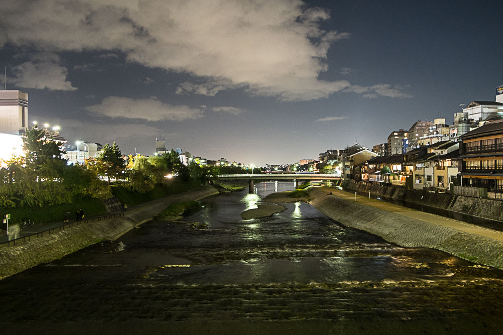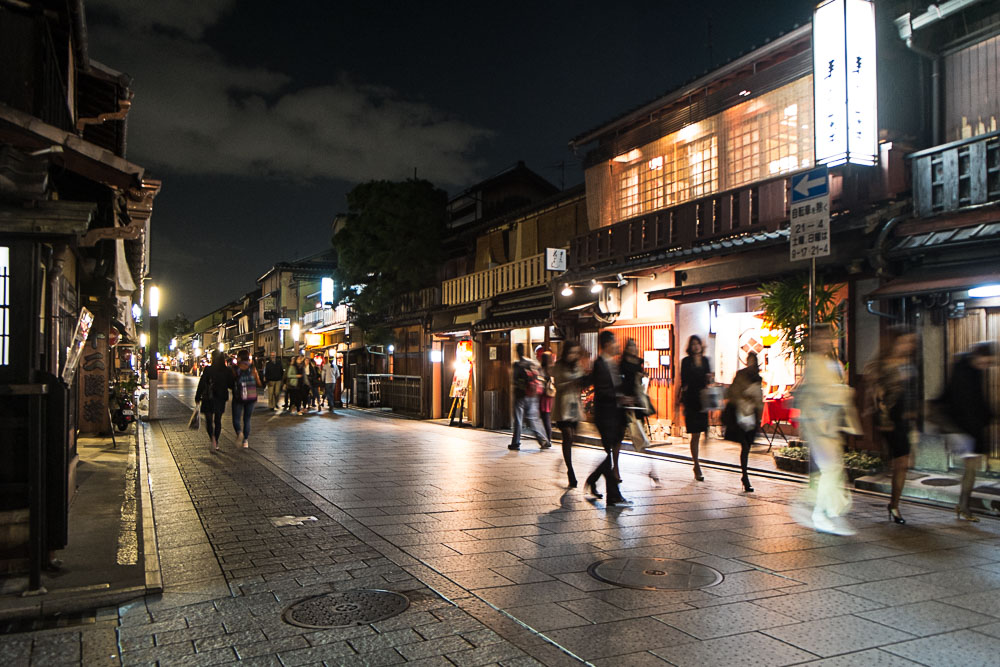 Retour à l'hôtel par l'équivalent local du RER (mais en propre et en fonctionnel, bon allez j'arrête de médire sur les trains français), corvée de linge sale et diner Soba au dernier étage d'un depato avant de faire un petit tour dans Gion (le quartier traditionnel de Kyoto).