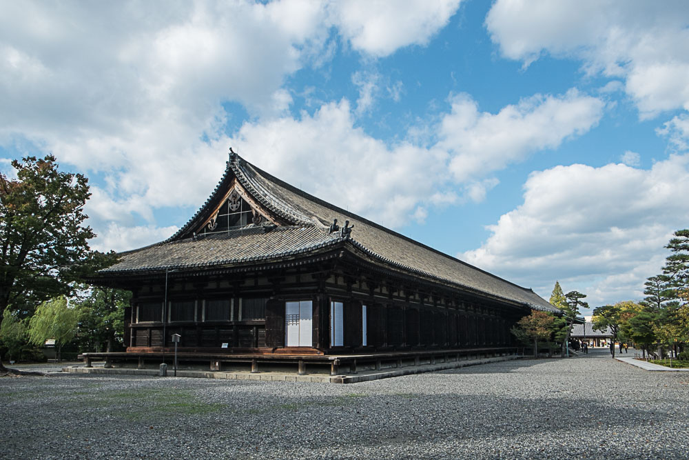 Ce temple est tout en longueur (120 m quand même) et abrite 1000 statues de Kannon (nom japonais d'Avalokiteshvara) avec une plus grande Kannon au milieu. On ne peut malheureusement pas faire de photos mais c'est impressionnant. Le bâtiment est aussi célèbre pour ses concours d'archerie qui consistaient le plus souvent à atteindre une cible située sur la galerie extérieure à 60 m sans toucher le toit. Les épreuves les plus violentes imposaient de placer le maximum de flèches en 24 h !