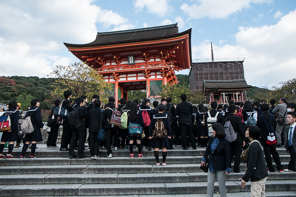 Parvenus à Kyomizu Dera, mauvaise surprise : c'est noir de monde et des travaux sont en cours. Autant dire que par rapport à ma première visite, la déception pointe le bout de son nez. La terrasse est pourtant impressionnante, mais l'ambiance n'y est pas.