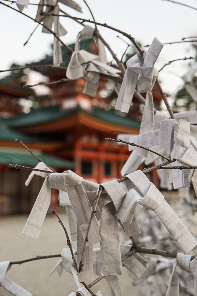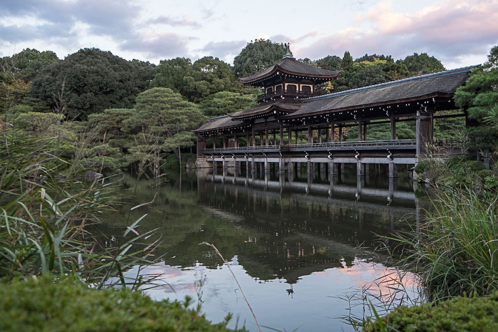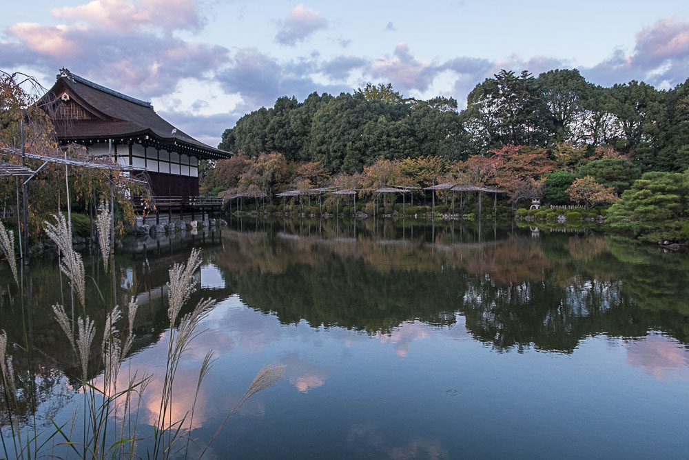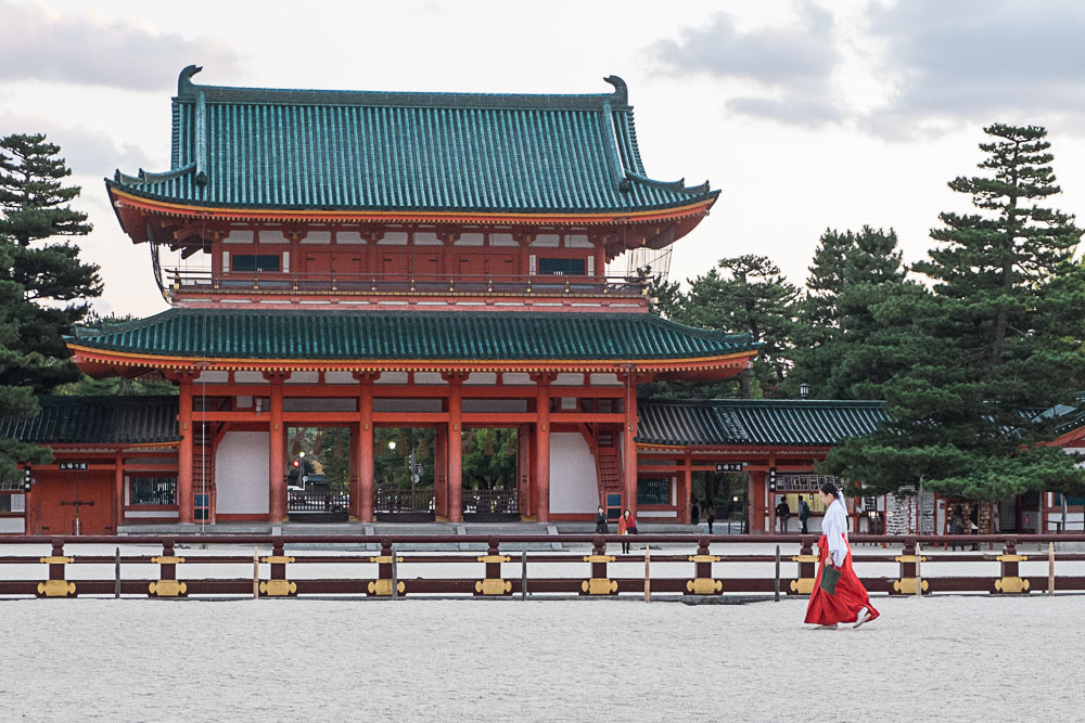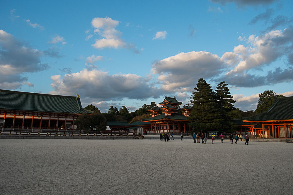 Fort heureusement, le soleil terminant bientĂ´t sa course, nous finissons par le Heian Shrine, et lĂ c'est l'inverse, juste avant la fermeture, nous sommes seuls dans le jardin, c'est assez magique !