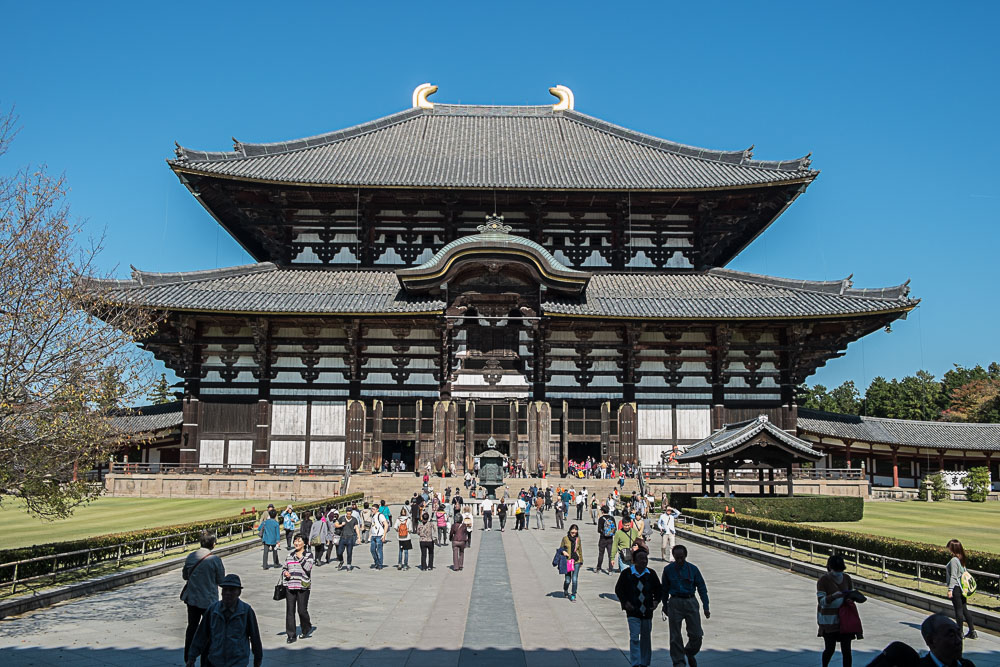 On commence par la visite du Todaiji, soit le temple du "plus". C'est plus grand, plus gros, plus massif que tout le reste, on ne fait pas dans l'intime lĂ , c'est le superlatif, la grosse artillerie. Et c'est en bois, donc c'est assez impressionnant !