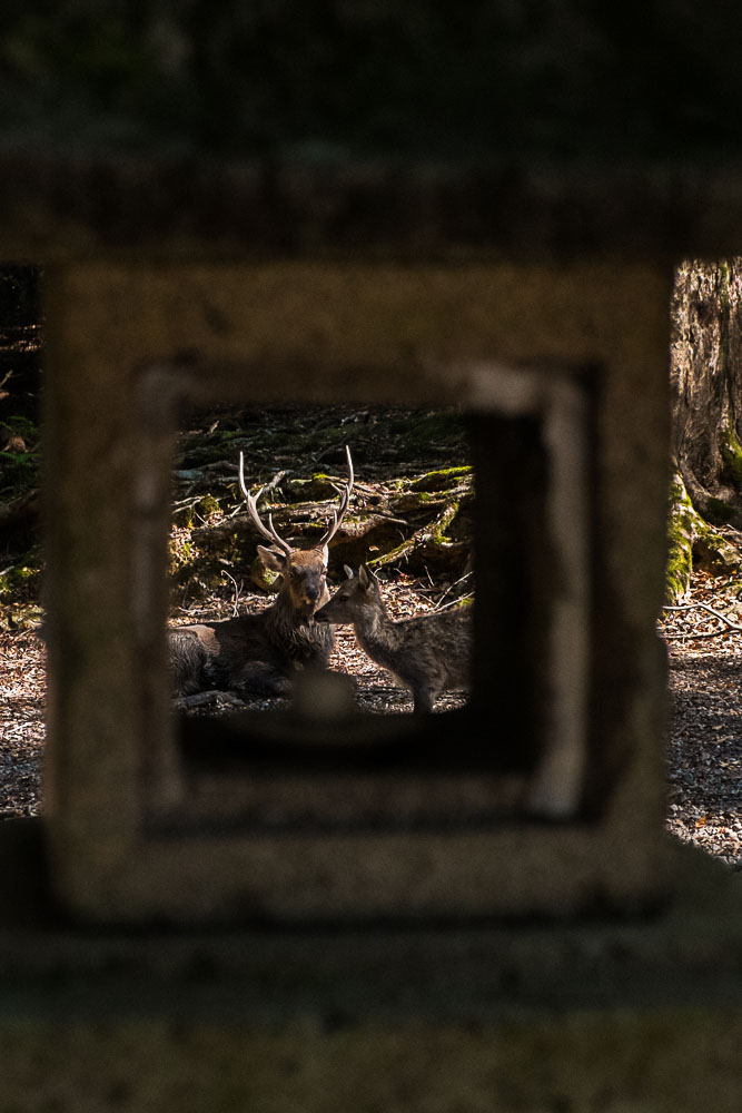 Il fait bon continuer la déambulation parmi les arbres et les lanternes de pierre (et les daims).