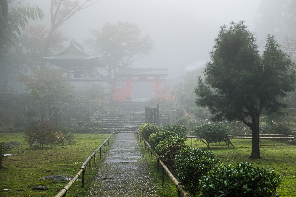 Après cet intermède spirituel, on avale vite fait un petit-déjeuner et on quitte Koya-san sous une petite pluie froide (pas un jour pour les chasseurs d'érables), pour s'enfiler 120 km vers Kyoto. 120 km c'est 4 h de route au Japon, un peu moins de 3H si on prend les autoroutes. Ce que nous faisons, ce qui permet de couvrir les 50 derniers kilomètres en 40 minutes !!!! Cette folie, j'ai dépassé les 100 km/h pour la première fois du séjour ! Bon alors 50 km, c'est 4 péages et 25 euros quand même....