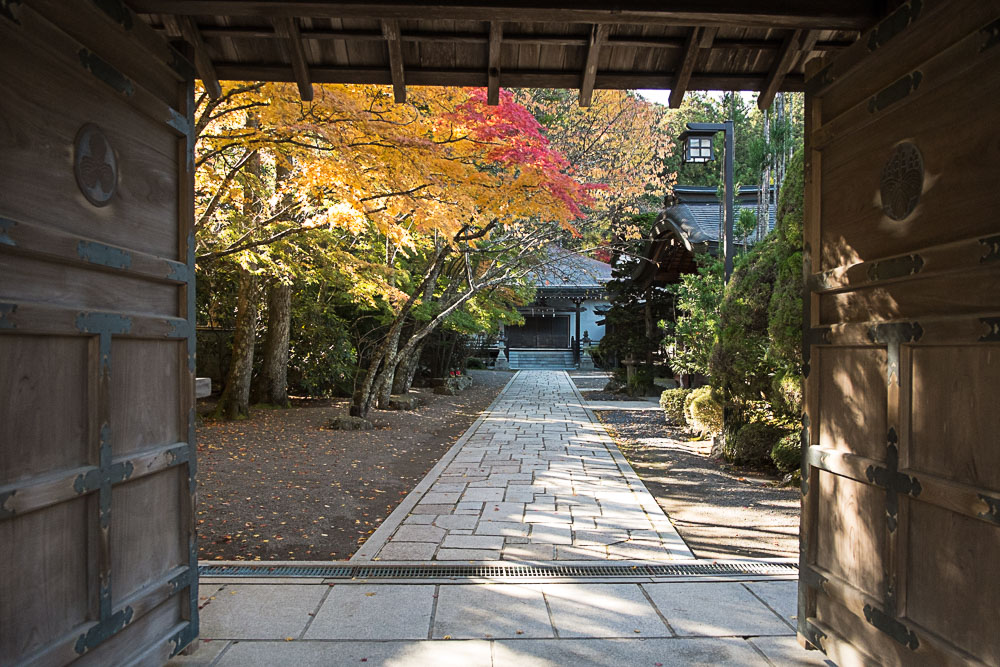 Les temples accessibles au public ont l'air de varier en fonction de l'époque de l'année, nous avons pu faire Kôtô-in, Sôken-in, Kôrin-in et Ôbai-in. Pas de photo pour ce dernier. Perspectives étonnantes sur des espaces de bois, tatamis et mousses, avec des premières traces de feuilles rougies. Tout concourt à donner envie de s'asseoir pour s'imprégner de l'esprit des lieux.