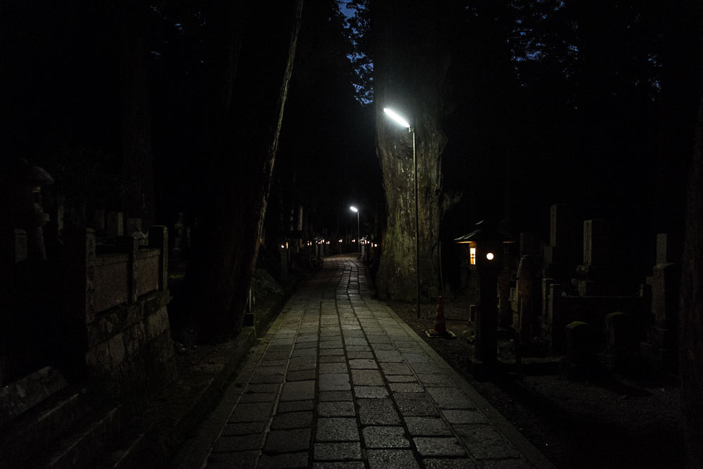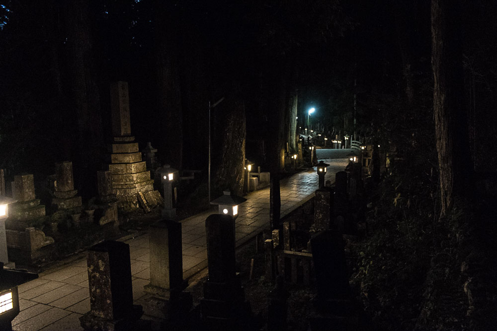 Je repars seul vers le cimetière pour profiter de l'ambiance nocturne. Las, les locaux ont encore fait des leurs avec l'éclairage. Alors oui, si j'ai un truc à reprocher aux japonais, c'est qu'ils ont des éclairages pourris.