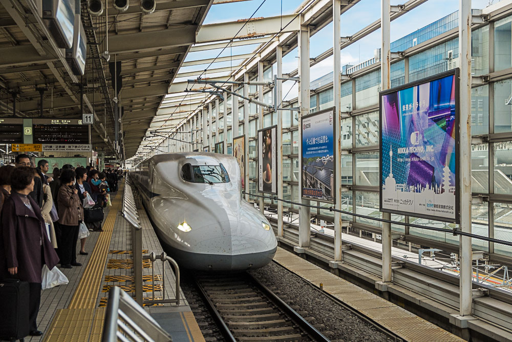 Le shinkansen (un Nozomi pour une fois, celui au bec d’ornithorynque, qui nous est accessible puisque nous n'utilisons pas de JR Pass) est toujours aussi confortable, de la place, pas de vibration, pas de bruit. Si on rajoute la ponctualité, la propreté, on comprend que la SNCF a encore de la marge de progression (enfin si jamais elle cherche à satisfaire le client).