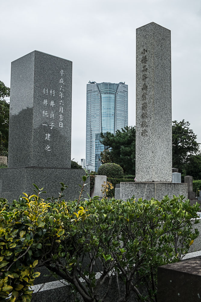 Le musée de la photo d'Ebisu est, paraît-il, fameux. Manque de chance il a fermé, il y a un moins pour 2 ans de rénovation. Tokyo est doté d'un paquet de musées mais ils sont surtout consacrés à de l'art moderne, alors forcément ça nous enthousiasme pas énormément. On décide de zoner vers Roppongi Hills, le quartier sorti de terre pendant les grandes heures immobilières 80/90. Juste avant, il y a un grand cimetière celui d'Aoyama (un peu l'équivalent de celui de Montparnasse chez nous), peuplé de nombreux corbeaux, et qui abrite des tombes de VIP, d'étranges et d'Hachiko (le chien de Shibuya).