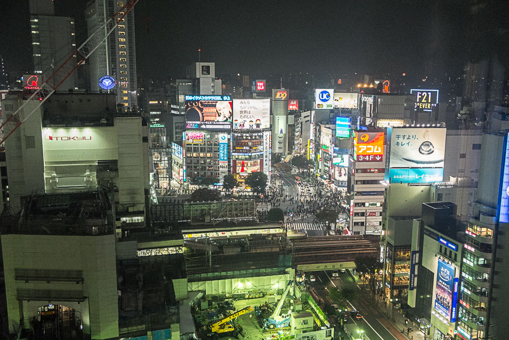 Un peu de shopping le soir autour de Shibuya, nous montons Ă la tour Hikarie qui permet d'embrasser d'un seul regard, la gare de Shibuya, et le fameux x-crossing.