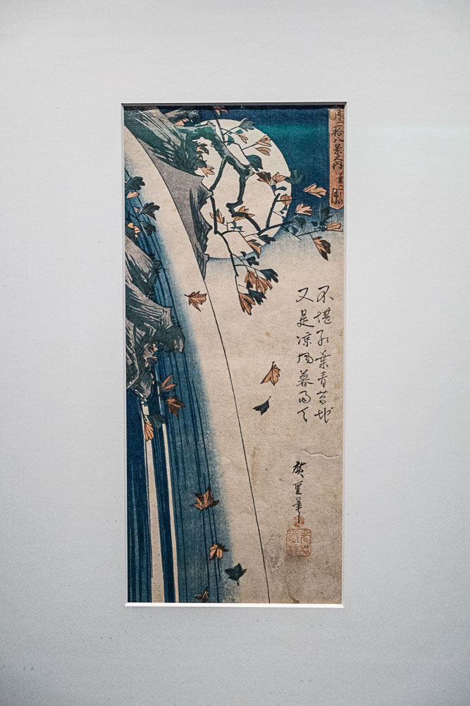Hiroshige, 28 vues de la lune, la lune au-dessus des feuilles tombantes :
