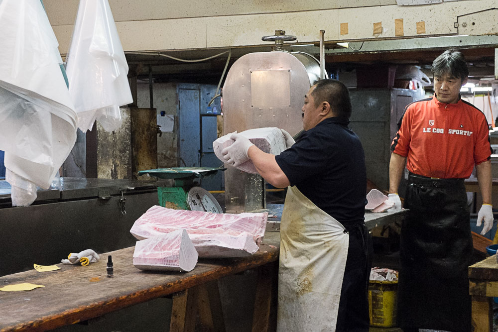 Pas de cris ou d'invectives, on reste calme (ou alors c'est que la phase agitée est déjà passée), on range, on nettoie, on débite les morceaux de thon rouge de 40 kilos.
