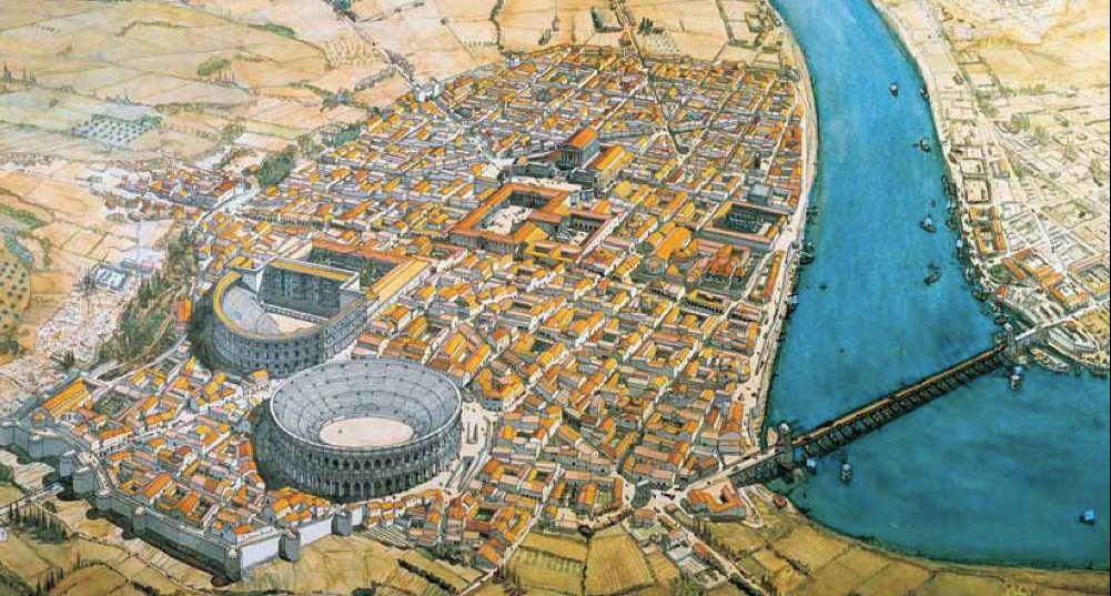 Arles est alors une plaque tournante du commerce nord/sud. Les amphores y sont vidées et -le plus souvent, c'est pas très économique- jetées, leur contenu est reconditionné avant de remonter par halage vers Lyon ou plus au nord. Vins, olives, saumures, sauces de poissons, herbes aromatiques, conserves de viandes voient ainsi du pays sur des bateaux à très faible tirant d'eau voire sur des radeaux d'outres (les utriculaires).