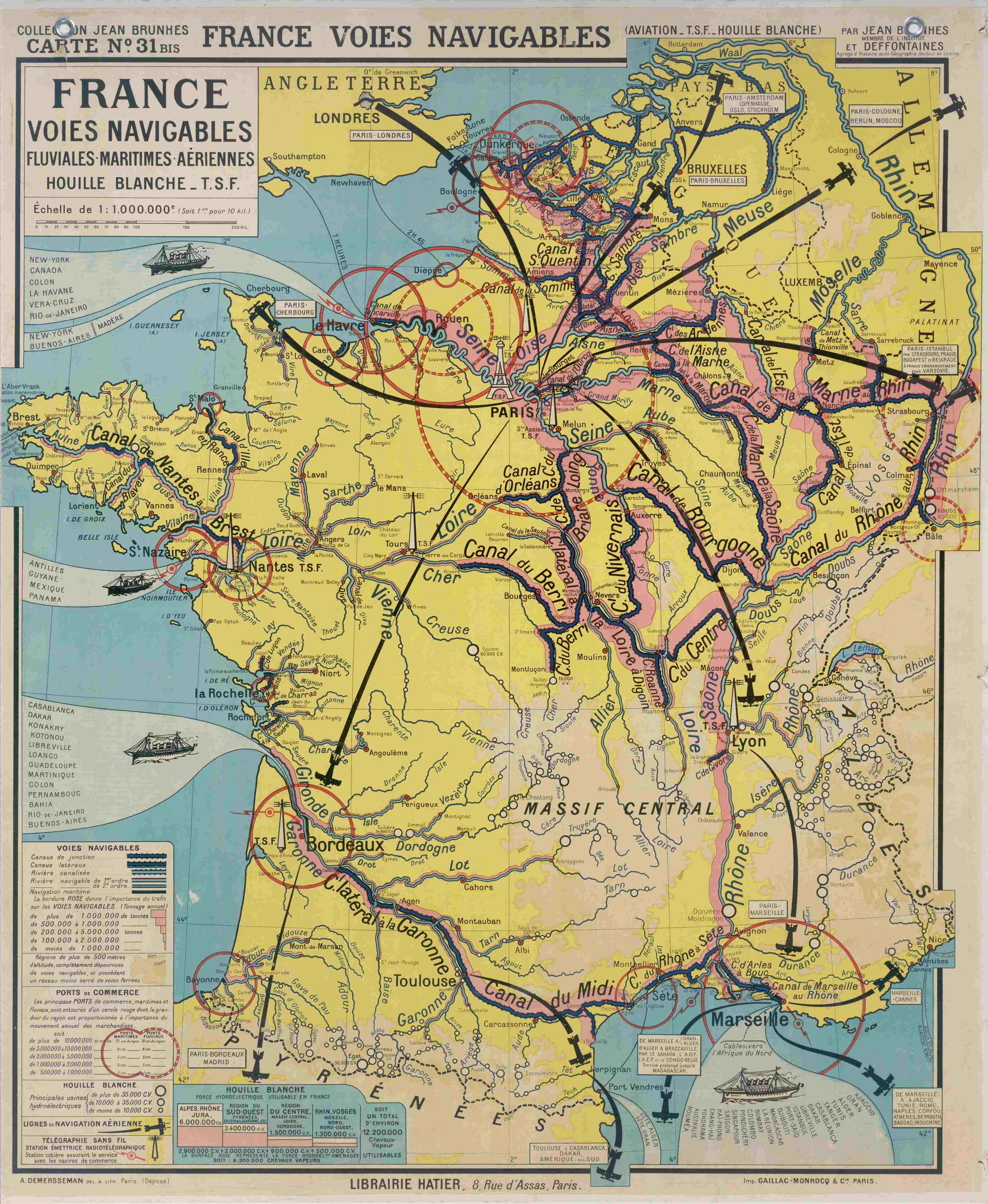 Une fois au port, il faut encore acheminer tout ça à l'intérieur des terres, des flottes immenses transitent par la voie fluviale. 8000 péniches sont utilisées rien que pour apporter le charbon du nord à Paris,