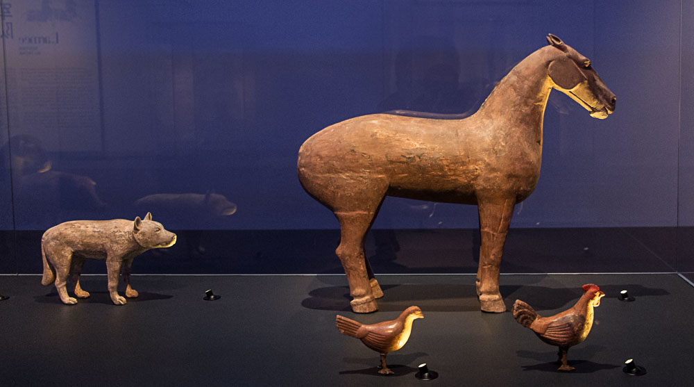Avant de débuter le parcours, il faut avoir en tête 2 choses, la Chine vit alors une époque plutôt calme (entendez par là qu'ils tapent bien plus sur la tronche des voisins que sur celles de leurs compatriotes) qui voit l'épanouissement des arts, des progrès techniques, l'adoption du confucianisme et le développement du commerce. Comme tout cela date quand même de deux millénaires, ce qui nous reste provient en grande partie des sépultures des élites, qui avaient la coutume pratique (pour nous parce que ça devait donner quand même beaucoup de travail) de se faire enterrer avec tout un tas d'objets destinés à leur faciliter la vie dans les outre-mondes.