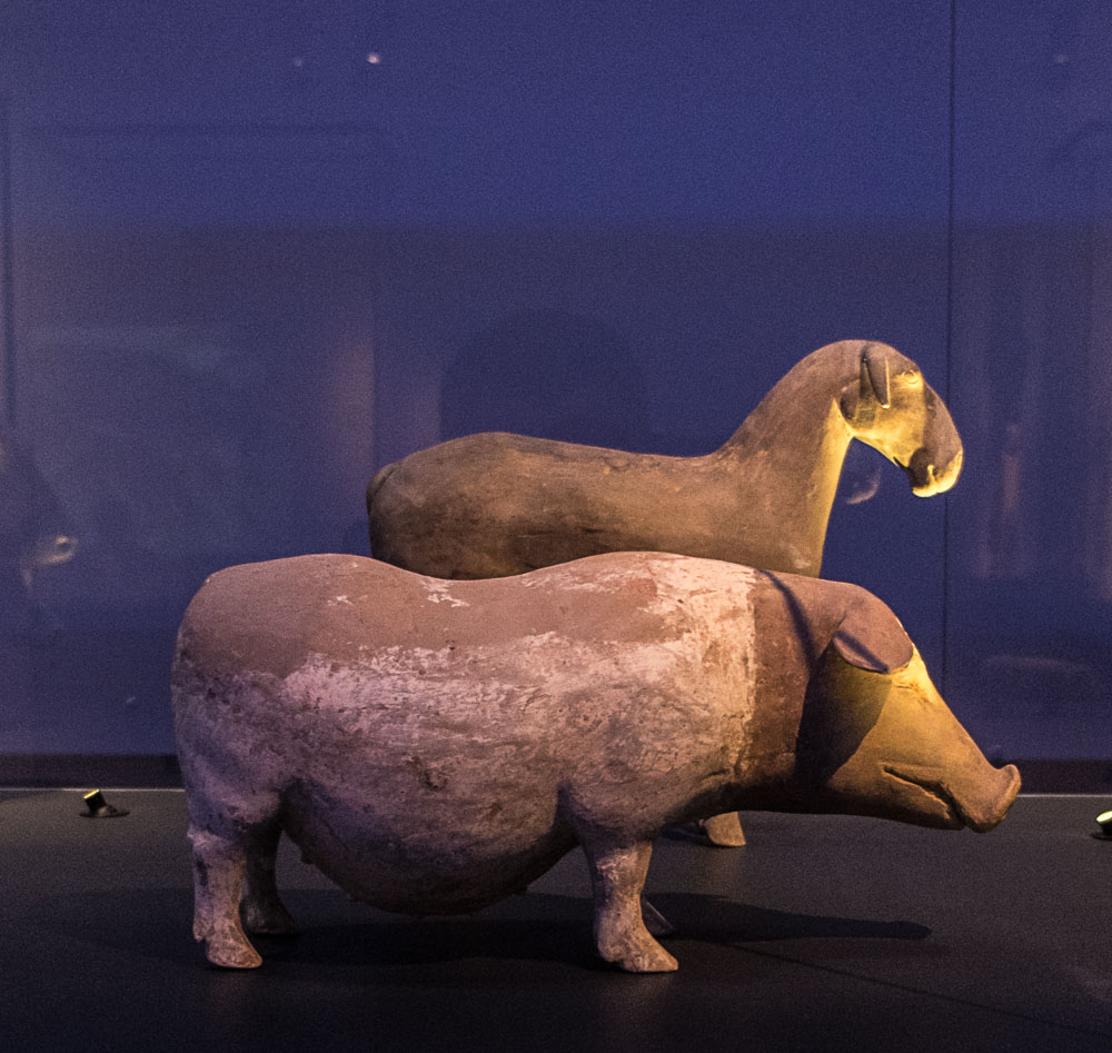 Les sacrifices animaliers ont été remplacés, là encore, par des figurines, chevaux, cochons, volailles, destinés à pourvoir aux besoins naturels et nécessaires du macchabée.