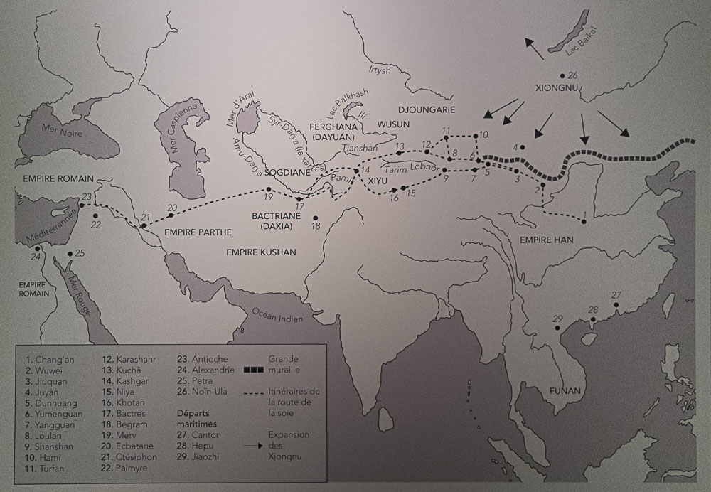 C'est aussi l'époque des premières caravanes parcourant la Route de la soie. Dès le IIème siècle AVJC, la soie arrive en méditerranée. Et comme dans la restauration, on ne rentre pas les mains vides, on importe des chevaux.