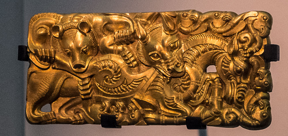 Se battre n'empêche pas de discuter et on retrouve des iconographies Xiongnu dans l'art Han comme avec ce thème du combat d'animaux.