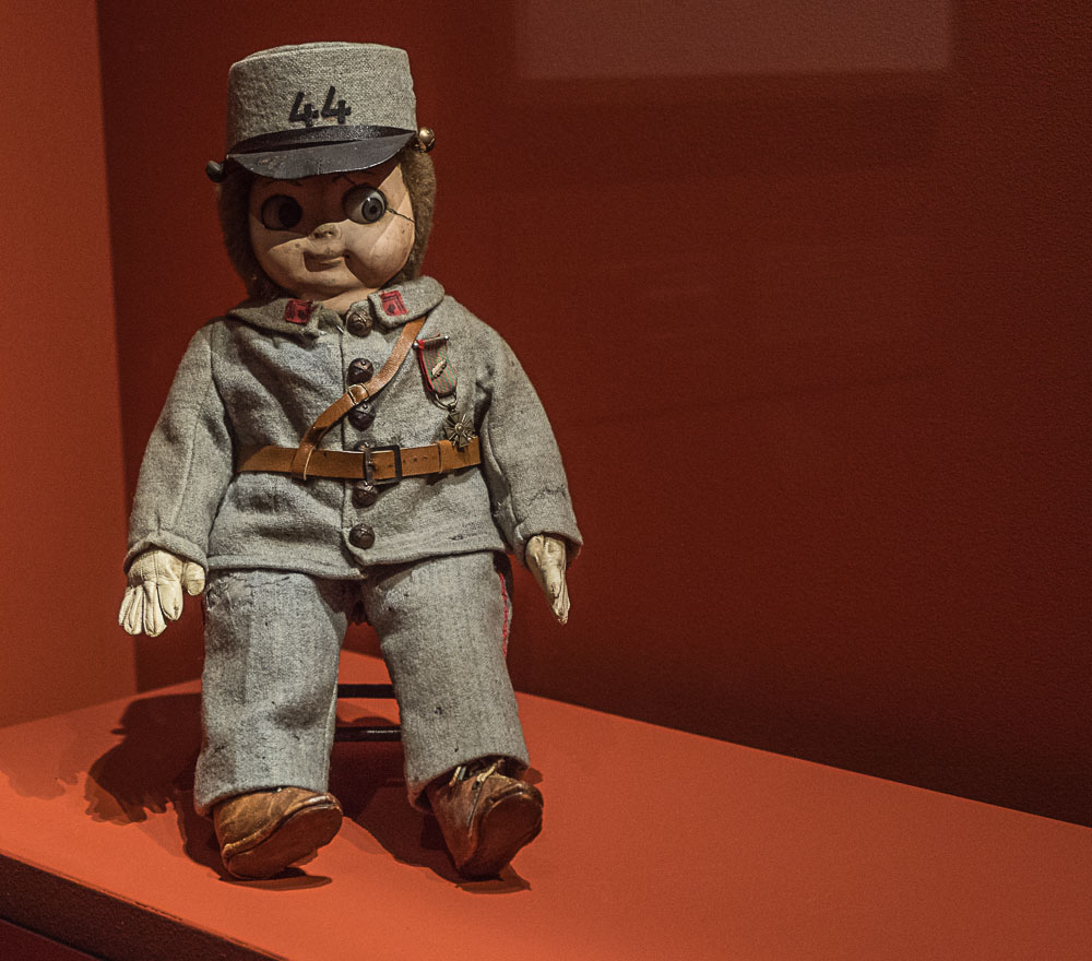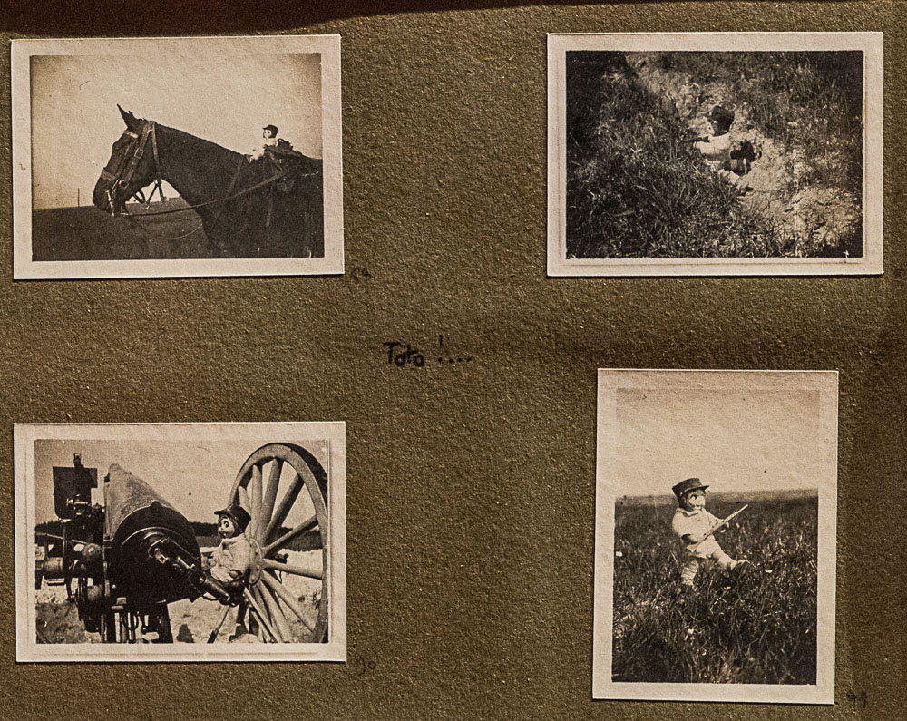 Dans un registre un brin léger (et bien avant les nains de jardin globe-trotters), voici Toto à la guerre, mascotte du maréchal des logis Louis Danton.