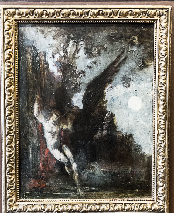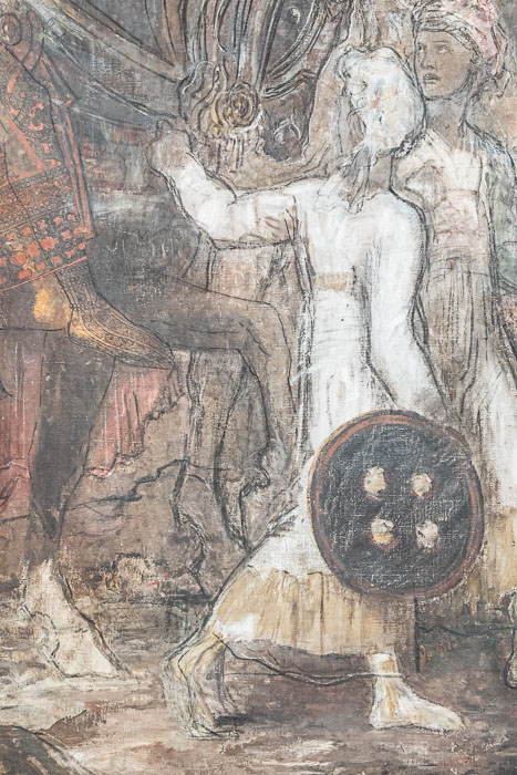 Après, on aime ou on n'aime pas le style mystico-classico-romantico-un-peu-glauque de l'artiste d'autant que beaucoup d'oeuvres sont sombres (peut être des vernis qui ont mal tourné ?). Les pièces donnent souvent une impression d'à moitié terminée, avec les traits non couverts de l'esquisse qui voisinent tranquillement avec les plages peintes.