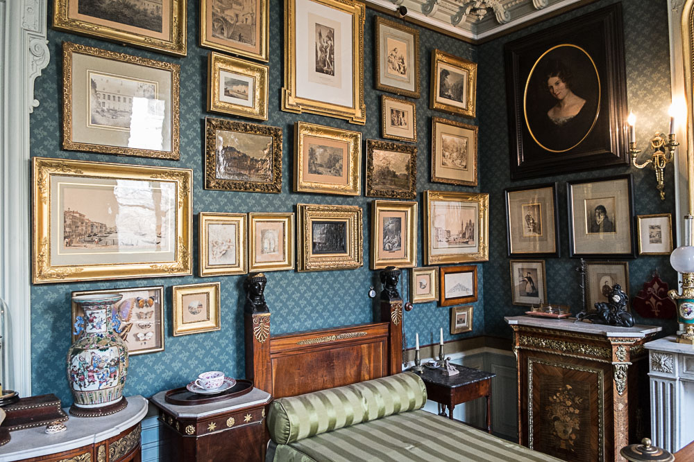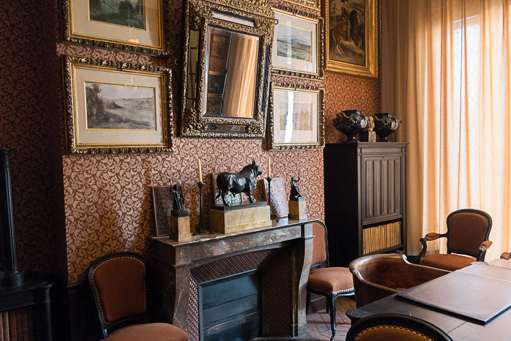 Le rez-de-chaussée, qui vient de réouvrir et le premier étage sont donc les parties d'habitation : c'est étroit et littéralement couvert des oeuvres de Sieur Gustave. Sur le parquet qui grince, on se marche un peu dessus pour circuler, ce qui accentue d'autant plus l'effet libératoire du petit escalier qui nous fait monter au 2ème étage.