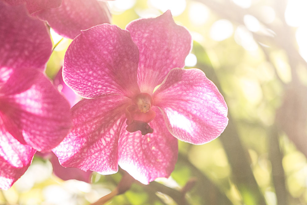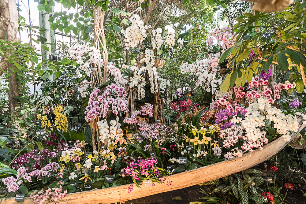 Après cette entrée de matière, vous pourrez y aller d'un couplet sur la profusion des teintes, le chatoiement des pétales caressés par le soleil d'un dimanche d'hiver, la serre comme écrin de bijoux odoriférants et l'orgue de bambous suspendus qui hébergent ces fleurs de paradis.