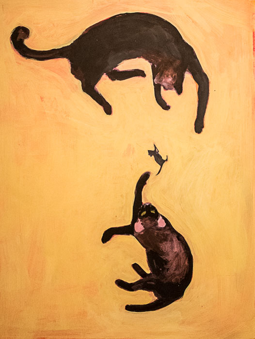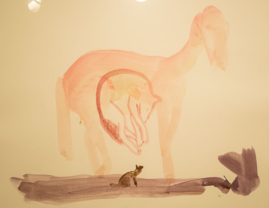 Après les merveilles mises en lumière à l'étage, la transition pourrait être dure. Alors certes, le style change, mais Schippers sait dessiner (et ça ce n'est pas donné à tous les scribouillards présentés complaisamment dans les temples habituels de l'art contemporain) mais il fait preuve d'un bel éclectisme entre dessin animalier très réaliste, paysages automobilistes (désolé je ne trouve pas d'autres termes) et visions oniriques apaisantes. Un petit échantillon de mes coups de coeur :