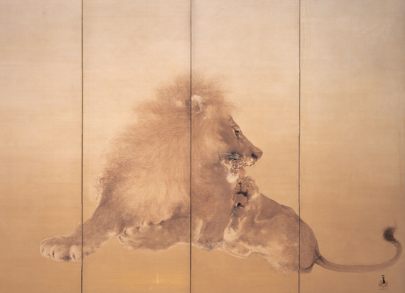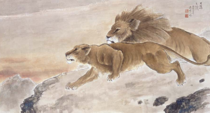Alors la merveille de l'exposition, du même Takeuchi Seiho, est une tête de lion de profil que malheureusement je n'ai pas retrouvée donc en voici un autre du monsieur mais qui n'a pas la même force.