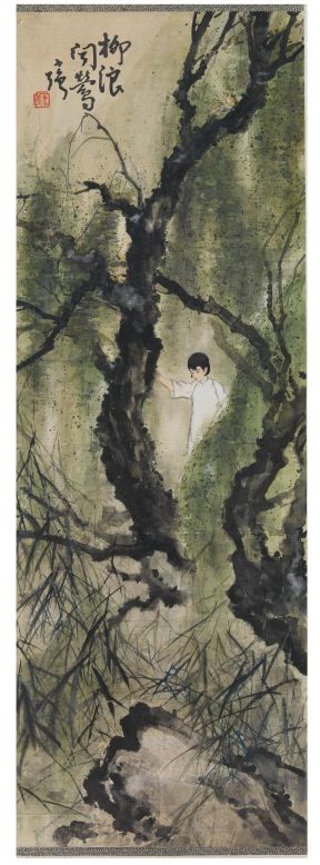 Mais tout n'est pas que conflit, en témoigne le tableau, tout de même inquiétant, Huang Shaoqiong, "écouter les loriots parmi les ondulations des saules".