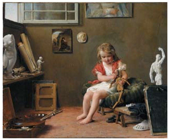 Mise en abyme du mannequin, qui d'utilitaire devient sujet pictural, un exemple parmi d'autres : Marie Amélie Cogniet, intérieur d'atelier.