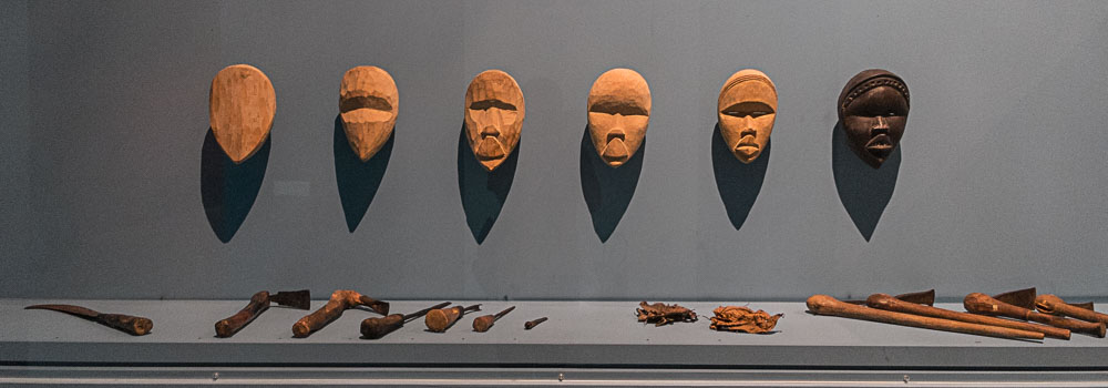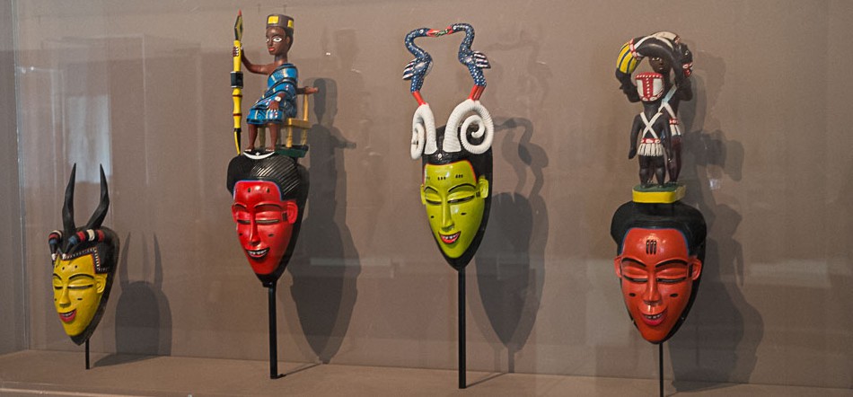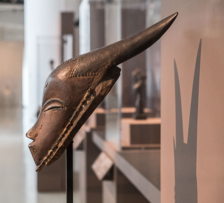 Vous verrez des masques, des masques, des masques... et quelques statues mais surtout des masques. Parlons des masques par exemple. Ils sont toujours portés par des hommes même quand le masque est féminin. Facile à reconnaître les yeux sont alors bridés (probablement pour mimer les battements de cils langoureux) et sont ronds pour les hommes : mais dans les 2 cas, une fois le masque en place, le porteur, forcément, il voit rien....