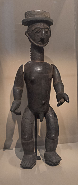 Il y a quand même des sculptures, effigies plus ou moins stylisées, certaines représentant clairement des européens (probablement créées sur demande des colons d'alors), avec des proportions accentuant la tête et le cou (environ 1/3 de la hauteur totale). Malgré les apparences, les corps sont rarement nus mais couverts de bijoux, de scarifications. Les différences de styles sont plus présentes que sur les masques, il faut dire que la marge de manœuvre est un plus grande..