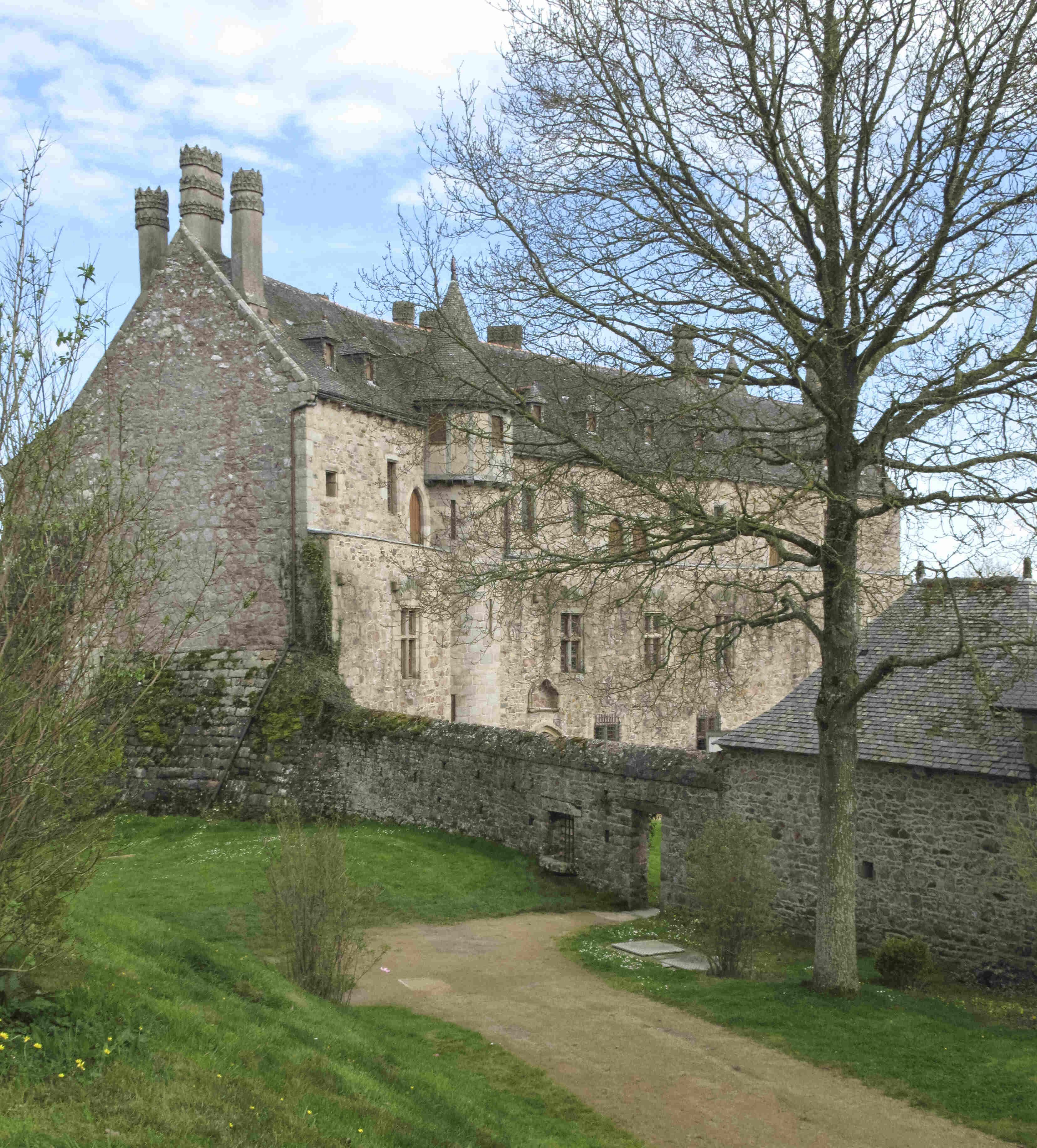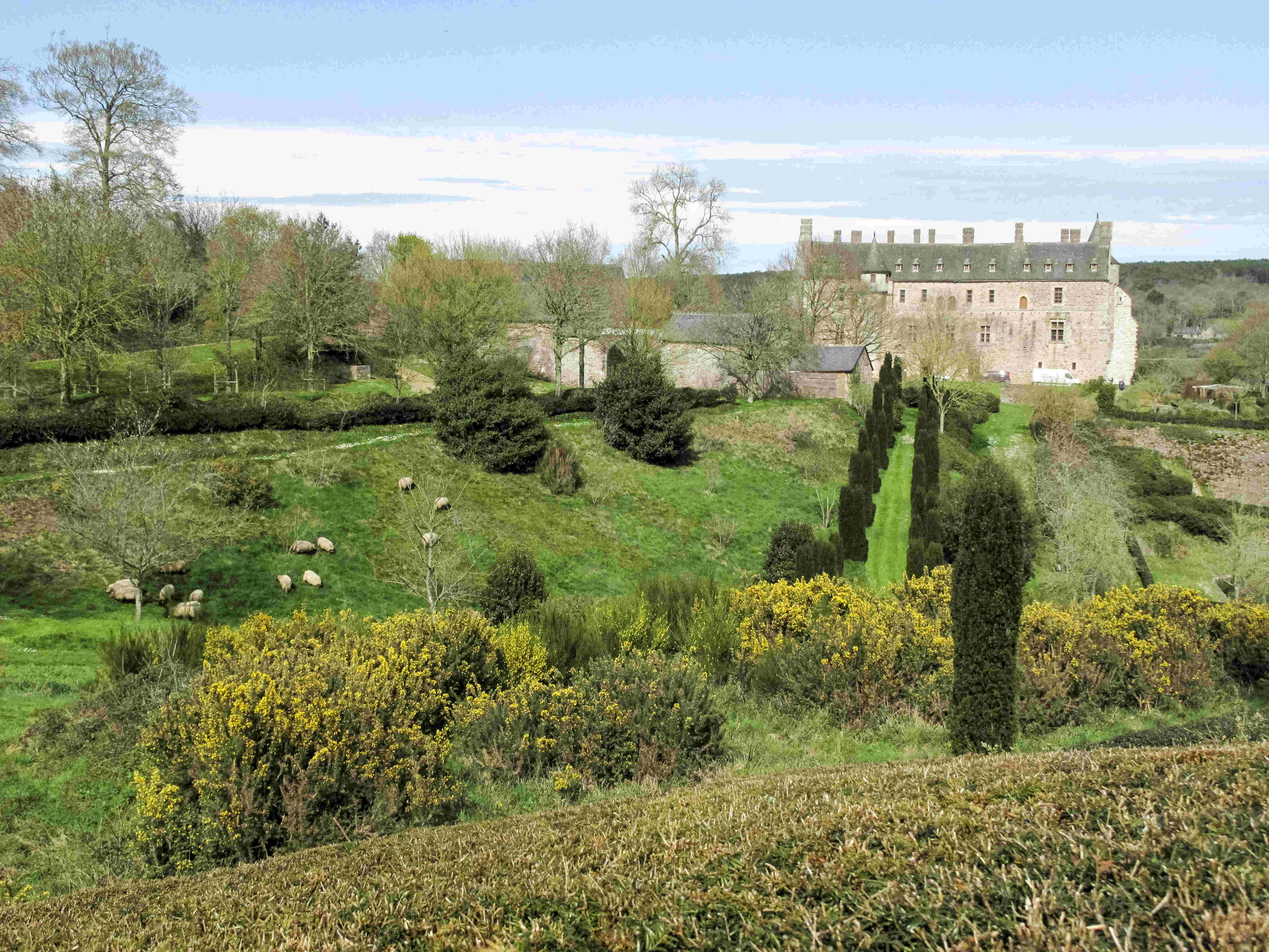 Le château et les jardins de la Roche-Jagu qui dominent une boucle de la rivière "Le Trieux", la végétation n'est pas encore là.