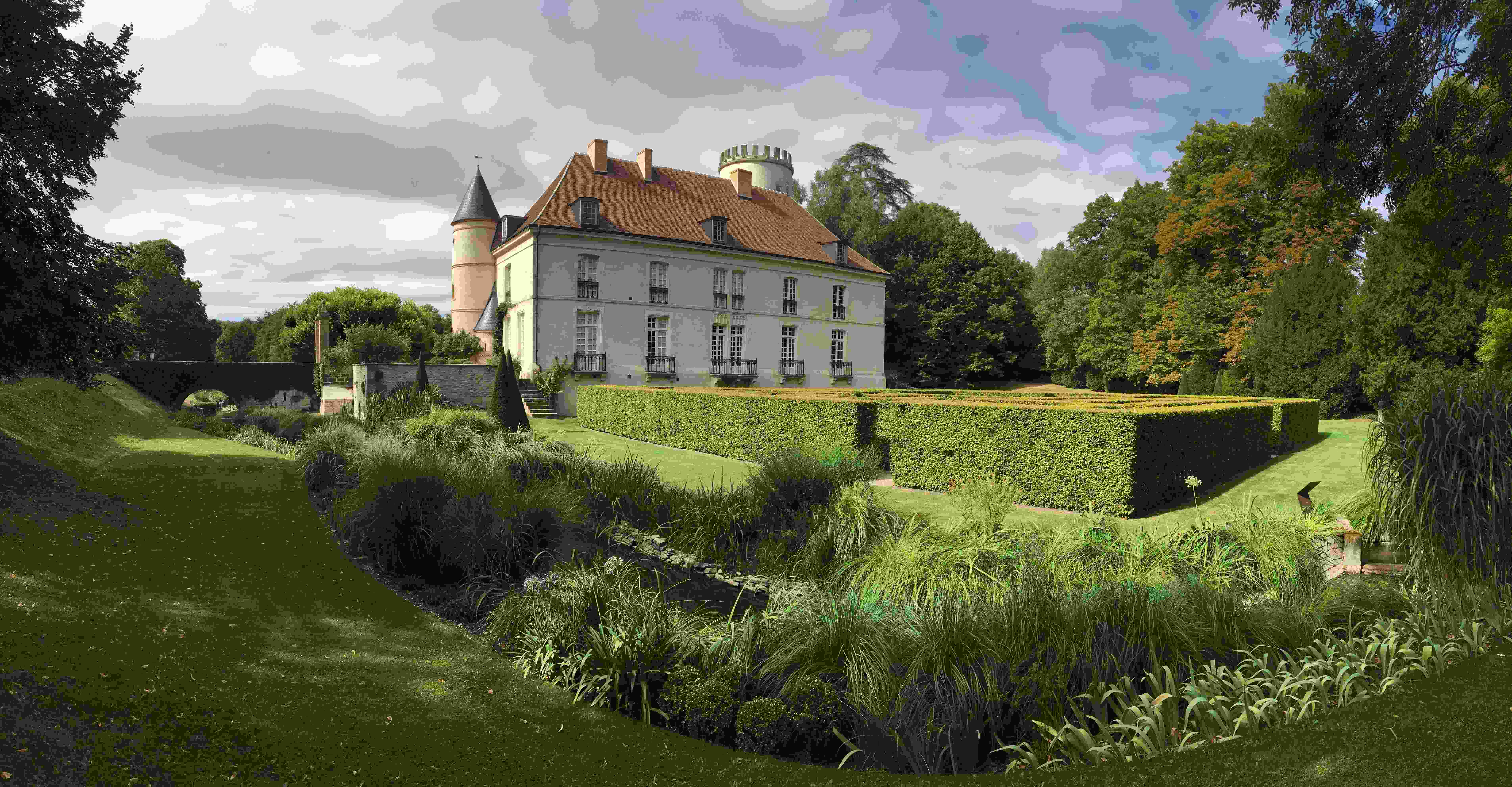 Château privé dont le jardin à l'anglaise est ouvert au public. Allée de buis, jardin secret, grande prairie en pente douce scindée en 2 par une rivière, labyrinthe, le jardin accumule les points de vue pittoresques. Un jardin clos, potager et verger, achève de régaler les yeux.