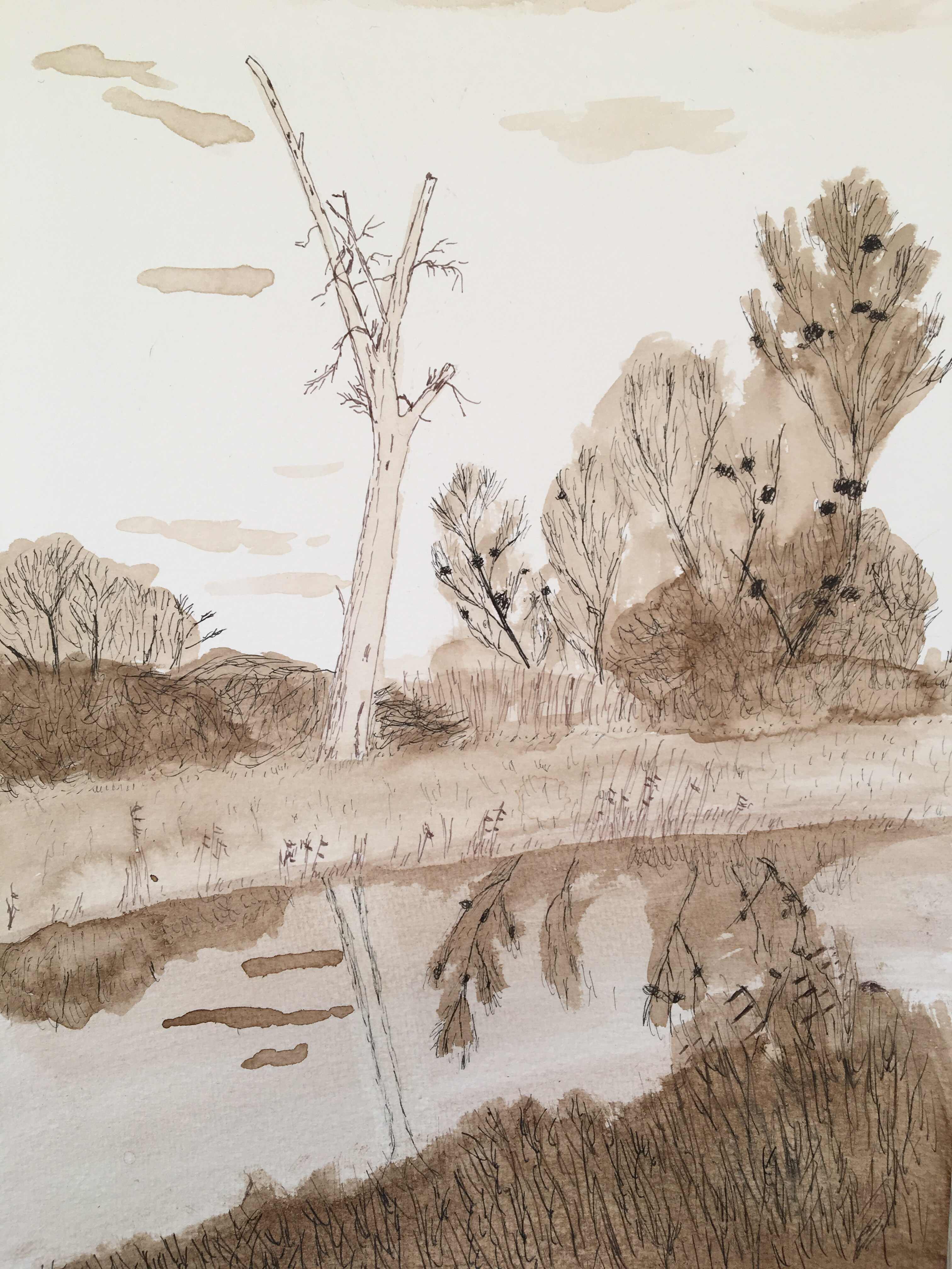feutres à pointe fine, brou de noix sur papier Canson Montval Aquarelle