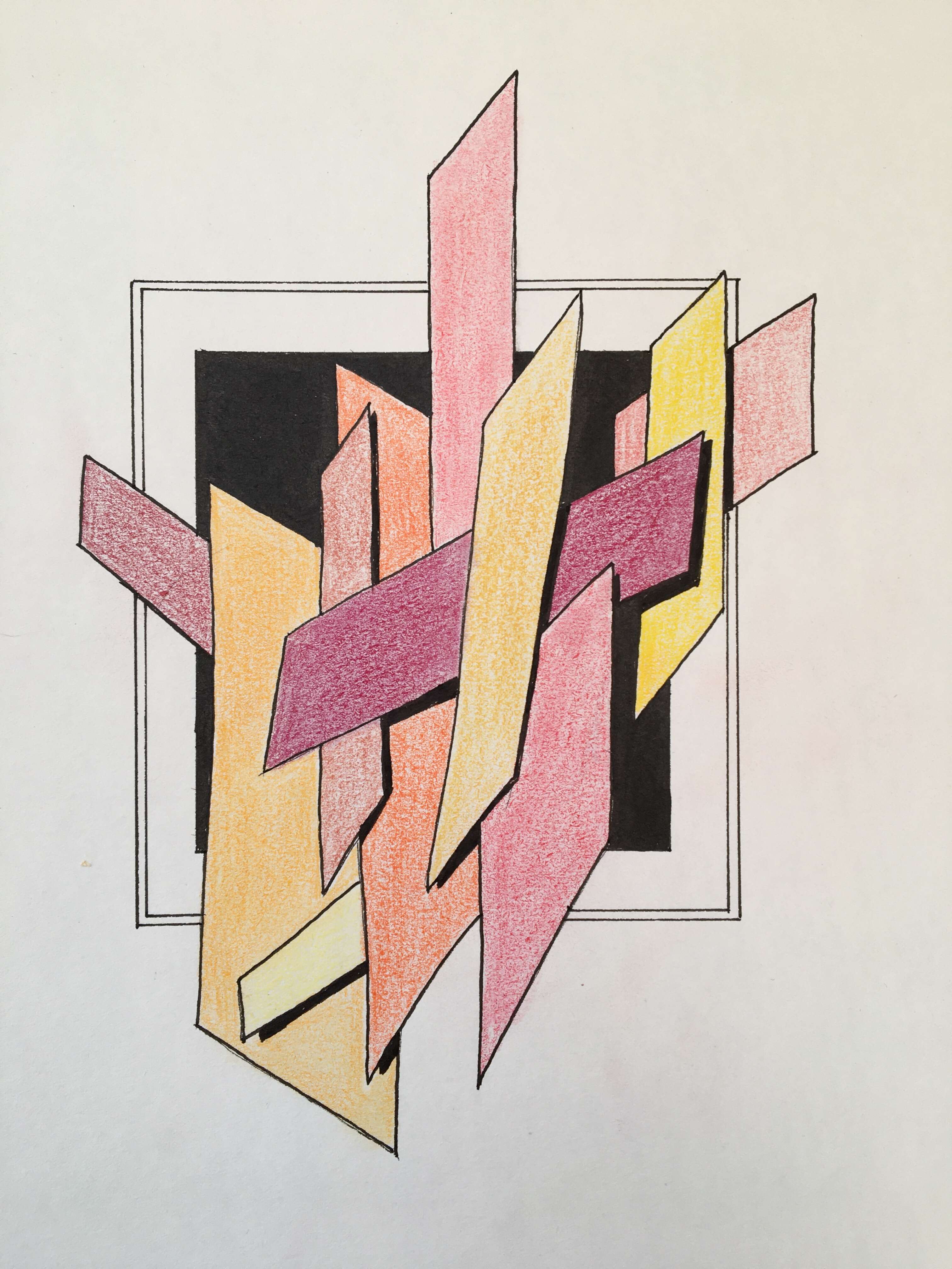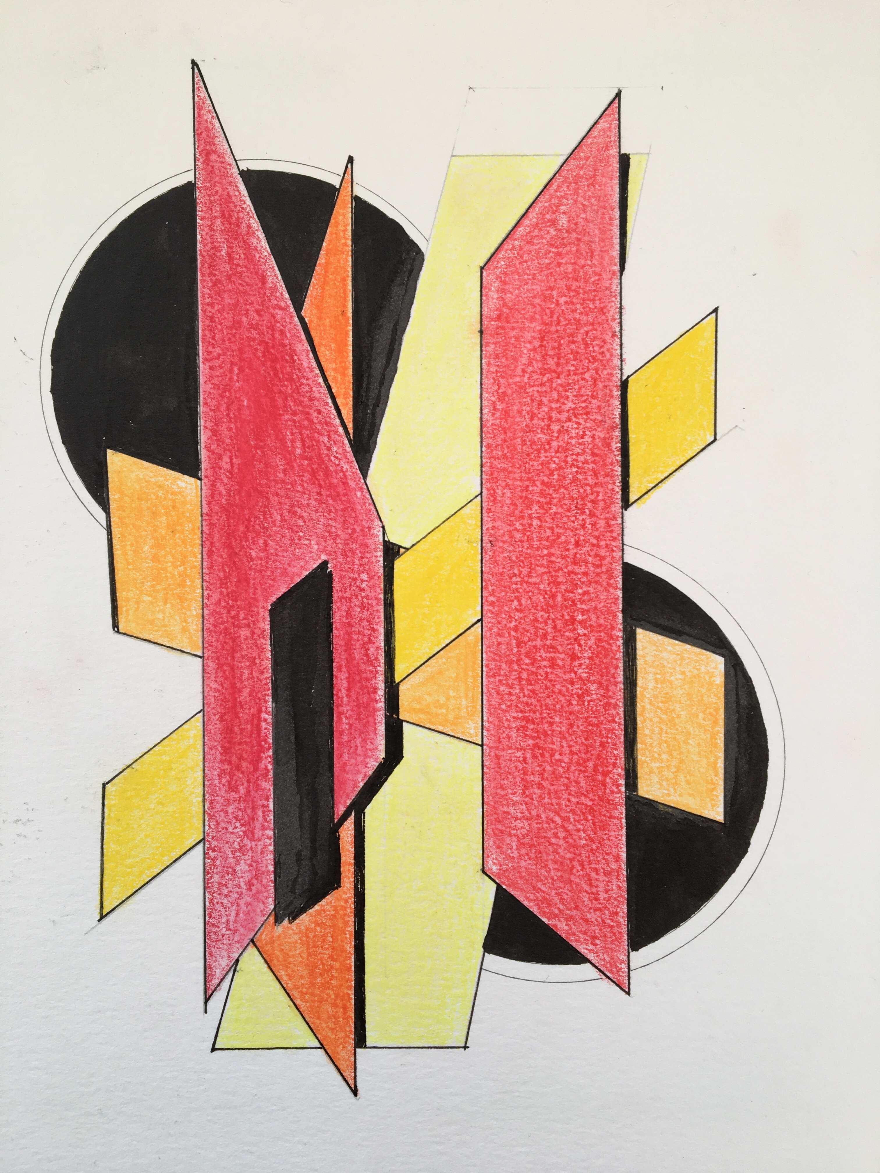 Essais d'abstraction colorée par JMUS feutre aquarellables, feutre à pointes fines, fude pen crayons de couleur polychromos, feutre à pointes fines, fude pen crayons de couleur polychromos, essence, feutre à pointes fines, fude pen crayons de couleur polychromos, feutre à pointes fines, fude pen